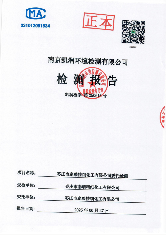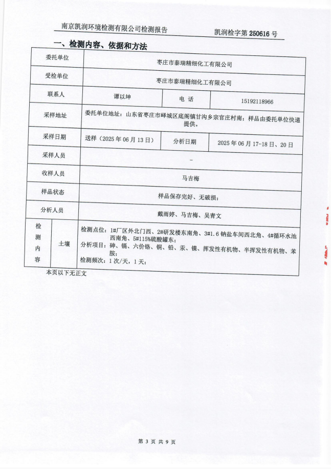 2025年泰瑞精細(xì)化工有限公司土壤檢測報(bào)告